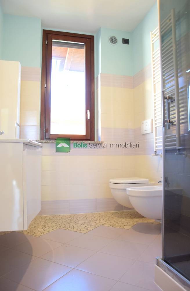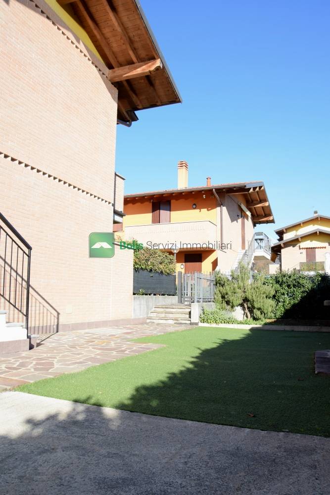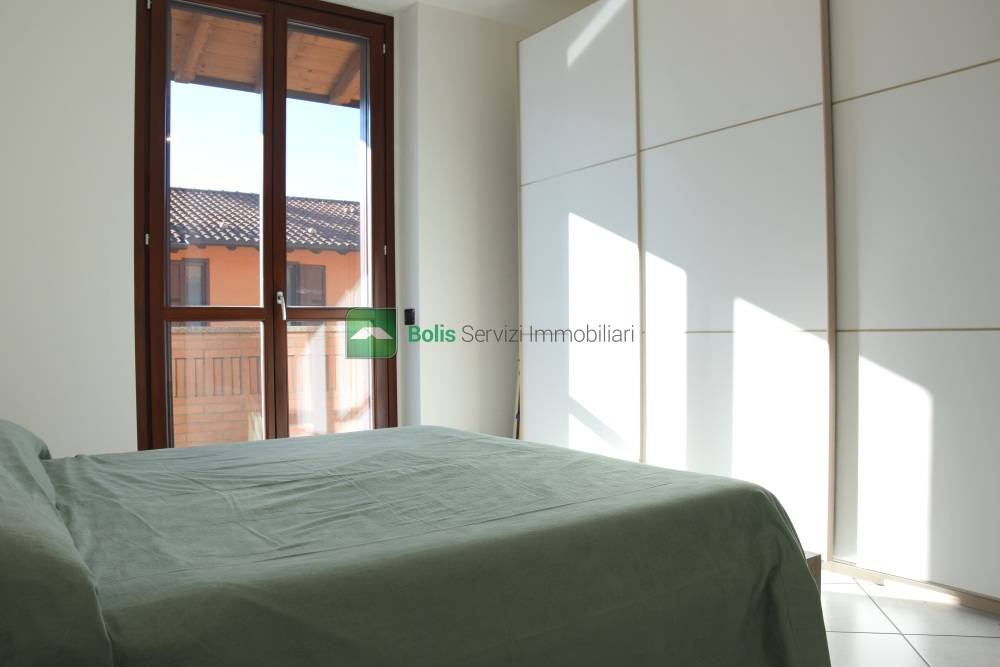Frazione Ghiaie di Bonate Sopra, viale Padania 14. In zona tranquilla e residenziale proponiamo in affitto luminoso trilocale arredato, posto al primo ed ultimo piano, libero su tre lati ed in perfette condizioni. L'ingresso indipendente ed il giardino privato danno accesso alla proprietà mentre una comoda scala esterna esclusiva ci conduce al primo piano dove si trova l'appartamento. Internamente l'immobile risulta composto da luminoso soggiorno con angolo cottura, disimpegno e zona notte, comprensiva di bagno padronale con doccia e di due ampie camere da letto entrambe servite da balcone. L'antifurto volumetrico e perimetrale e l'impianto di condizionamento (freddo/caldo) completano l'appartamento. Il piano interrato, raggiungibile sempre tramite scala esterna ad uso esclusivo ed avente superficie complessiva di 80 mq, è composto da una spaziosa taverna con predisposizione per una seconda cucina, locale lavanderia con doccia ed accesso diretto ad uno spazioso box doppio in lunghezza. Spese condominiali € 120 mensili (incluse spese di riscaldamento, acqua fredda e acqua calda). Classe energetica B (90.20 kwh/mqa). Affitto richiesto € 1.000,00 mensili. Solo referenziati. Contratto di locazione solo di tipo transitorio: minimo 12 mesi, massimo 18 mesi (NO locazioni 4+4). Rif. 1055.