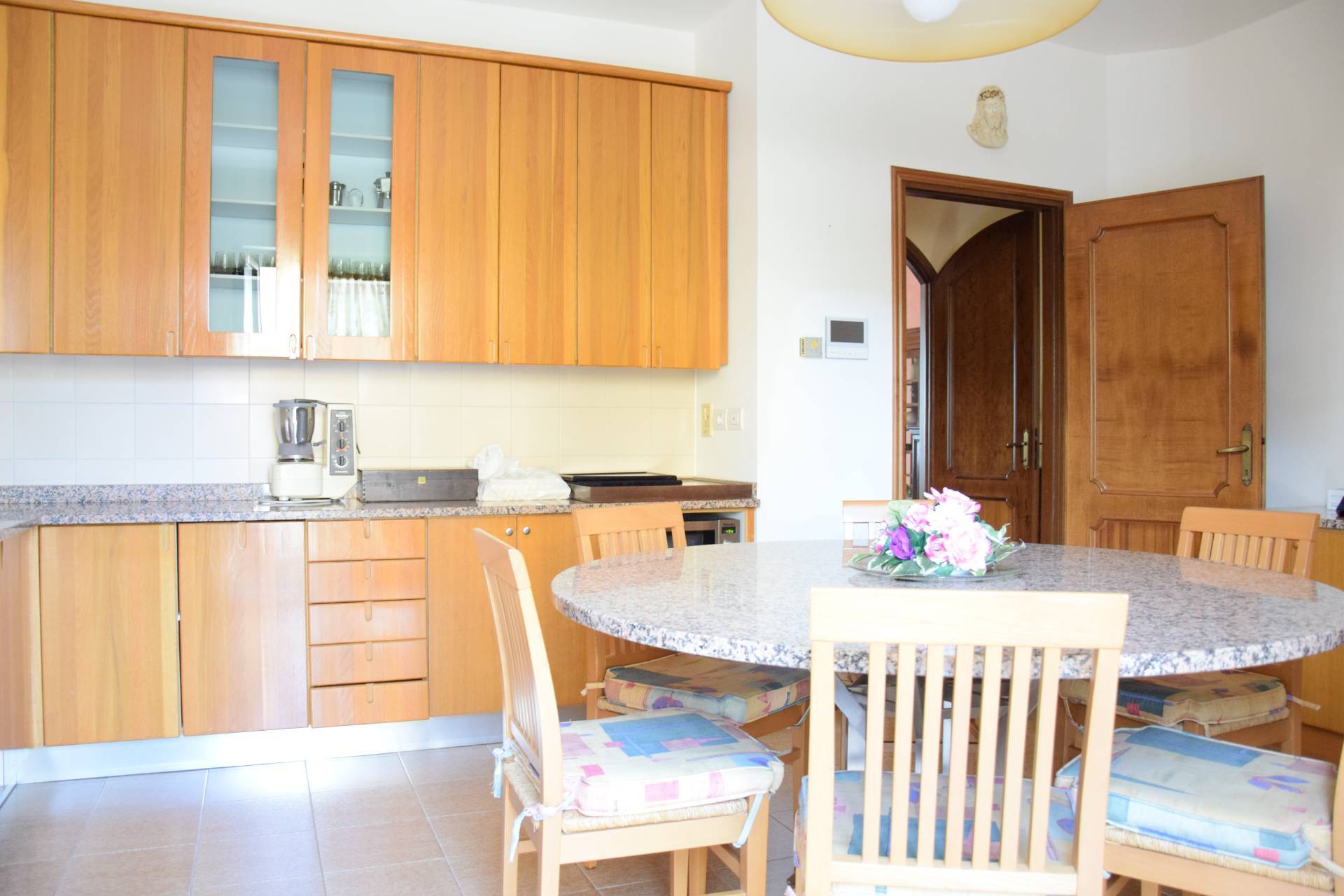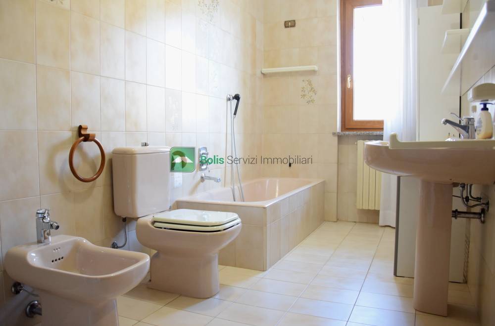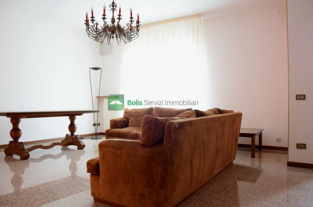 A pochi passi dal centro del paese e in posizione comoda per i collegamenti stradali ed i servizi, proponiamo in affitto grande e signorile villa a schiera parzialmente arredata ed in perfette condizioni. L'ingresso indipendente ed il giardino privato danno accesso alla proprietà. Il piano terra, avente superficie di 80 mq, è composto da ampio e luminoso soggiorno, cucina abitabile arredata, disimpegno e bagno di servizio. Il primo piano è composto da camera matrimoniale con terrazzo, camera doppia, camera singola con balcone e grande bagno padronale con vasca e doccia. Il piano interrato, avente superficie complessiva di 80 mq, è composto da una spaziosa taverna con camino, locale cantina, bagno di servizio e locale termico con caldaia autonoma a condensazione. Completano la proprietà un box spazioso ed un posto auto coperto interno alla proprietà. Spese per la gestione delle parti comuni pari ad € 100 mensili, inclusa la manutenzione del giardino privato. Finiture di pregio, completo di impianto d'allarme volumetrico e perimetrale, videocitofono, predisposizione impianto di condizionamento, irrigazione automatica del giardino gestibile tramite App. Classe energetica C (86.99 kwh/mqa). Affitto richiesto € 1.600,00 mensili. Solo referenziati. Rif. 741.